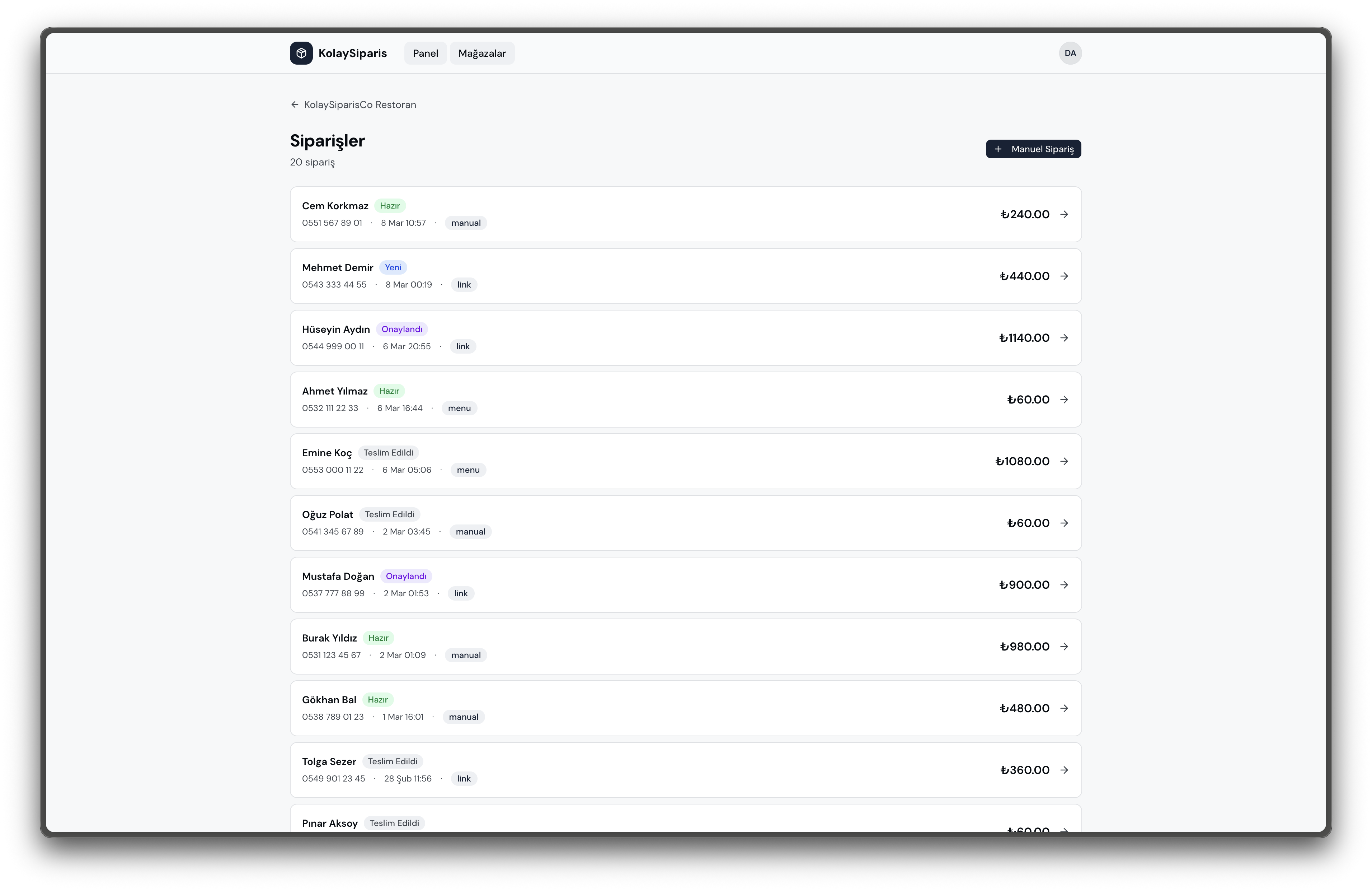 Tüm siparişleri tek ekranda görün