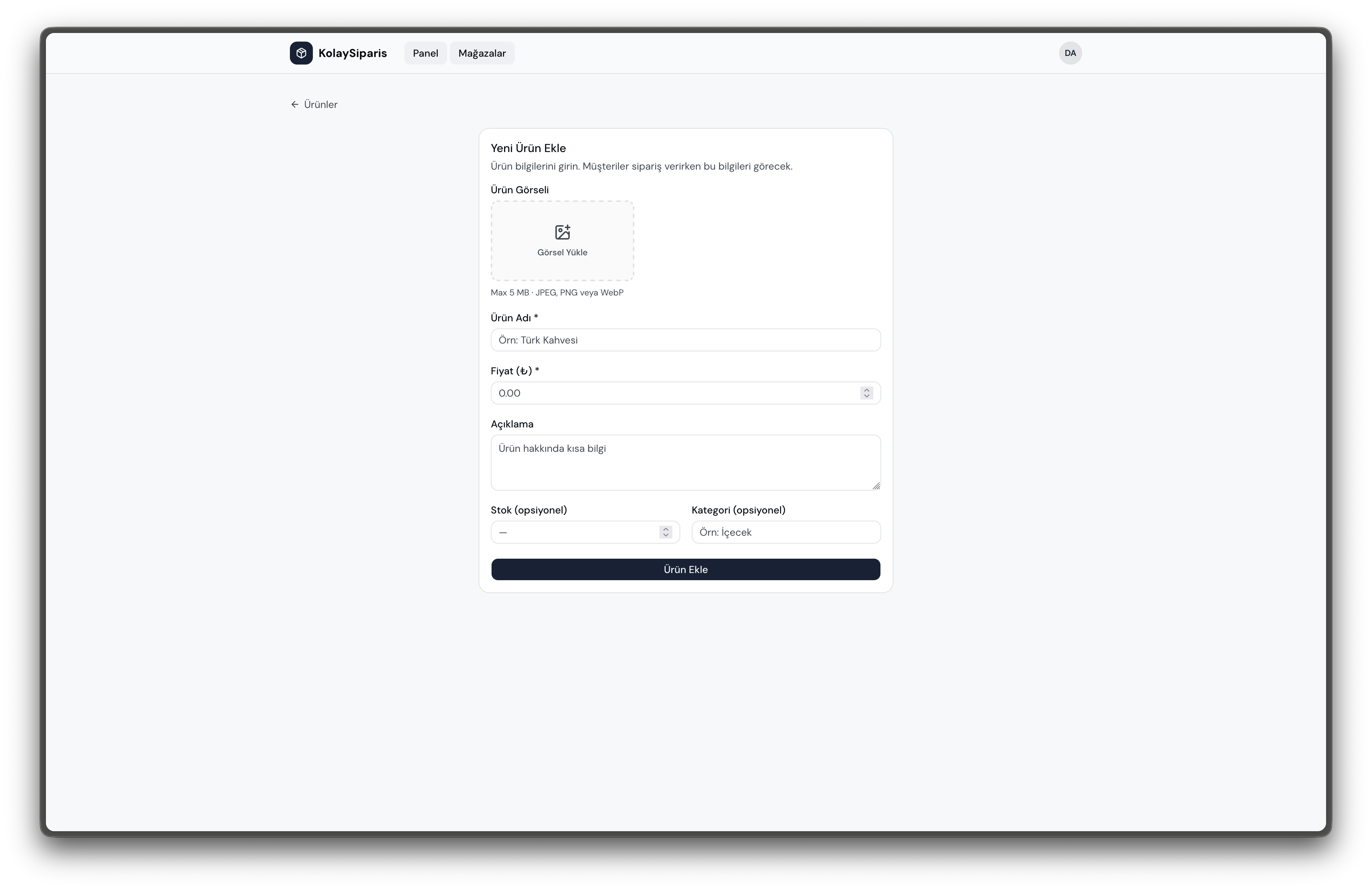 2 dakikada ücretsiz hesap açın, mağaza adınızı girin, ürün ve hizmetlerinizi ekleyin.